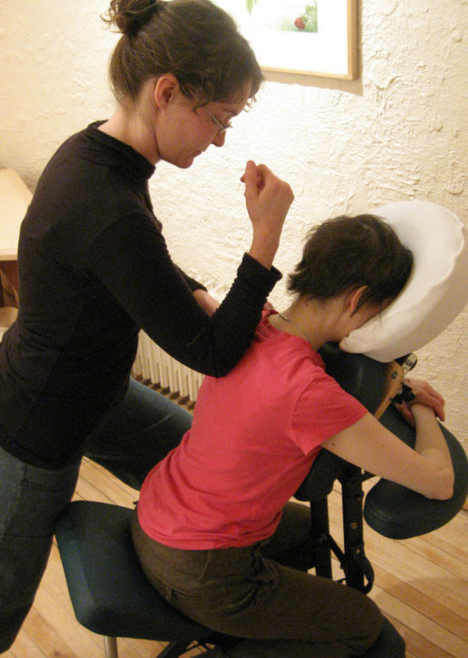 La technique que je pratique est le shiatsu sur chaise et le massage couvre le haut et le bas du dos, la nuque, la tête et les bras. Selon les besoins du client, j’adapte ma routine pour libérer efficacement les tensions de façon personnalisée. Je termine la routine par des percussions qui dynamise la personne pour qu’elle puisse se sentir d’attaque pour continuer sa journée. Les rencontres peuvent se faire de façon ponctuelle (période intense de travail, échéance de production, etc.) ou encore sur une base régulière (mensuelle, hebdomadaire…).
